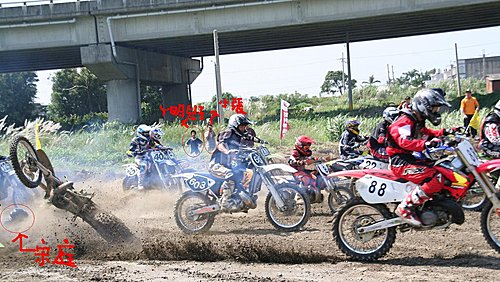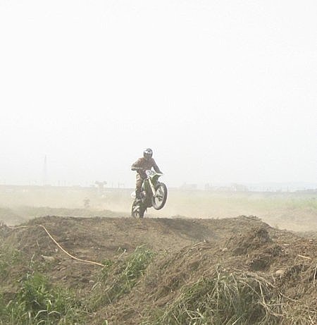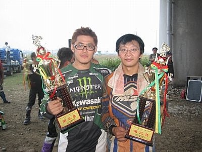 因為車壞掉和阿明借車...真的很不習慣...還是我的KX好!!!決賽的時候一起跑就熄火....過第二個彎又熄火真是嚇炸又嚇炸....後來因為運氣還不錯衝到第三....但和1,2差了快一條直線加速!!加油