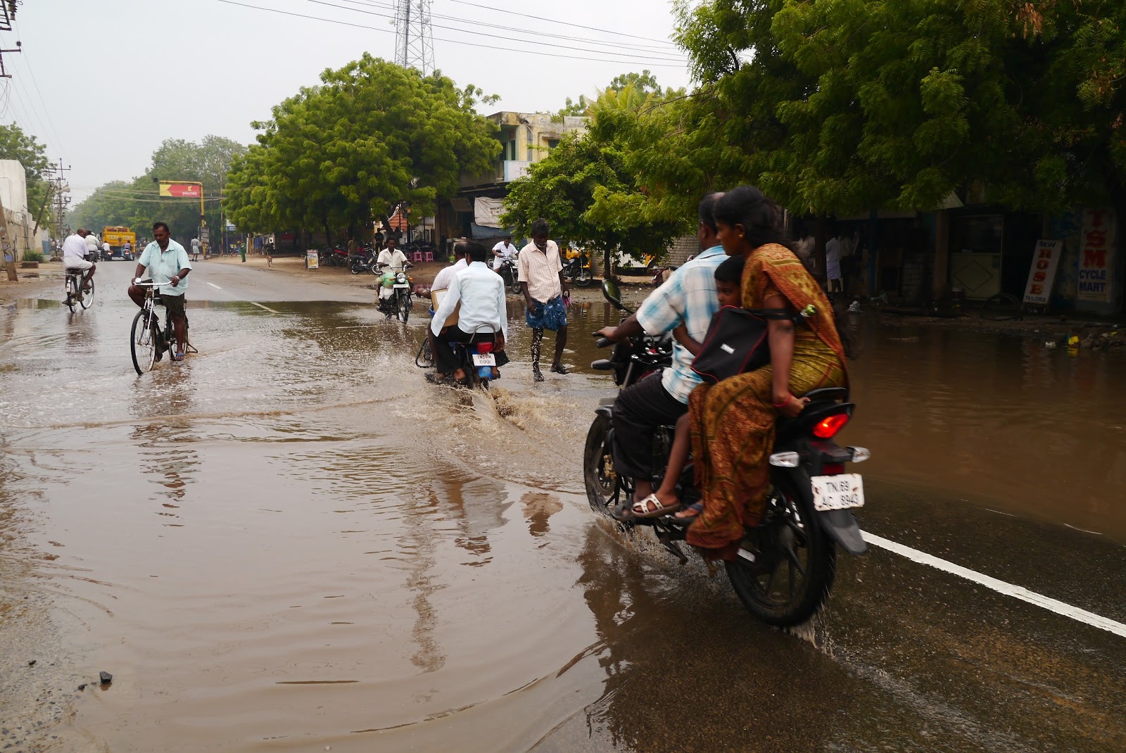 昨夜下過一場大雨,印度排水系統不好道路已是嚴重積水,且本來就有很多坑洞