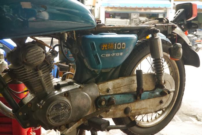 我年輕時的愛車,她應該是100CC循環四檔,所以我懷疑她整顆引擎是移植過來的,我記得光陽的風神是國際五檔