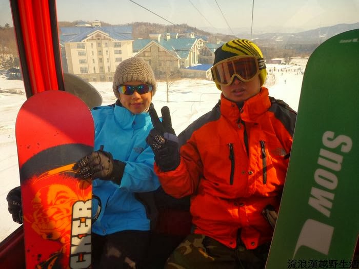 快速的穿上雪鞋領到纜車卡後就開始第二天的滑雪日程