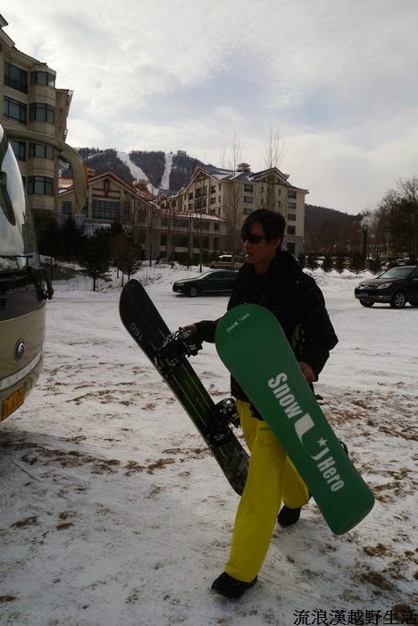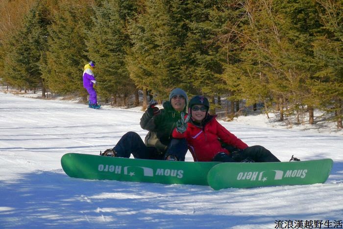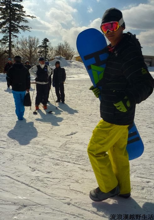 最後他拿著板子走下雪場放棄了~應該是和滑雪沒有緣份吧哇哈哈
