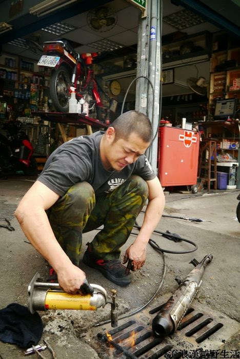 用噴燈高溫燃燒可以簡單的清潔消音管