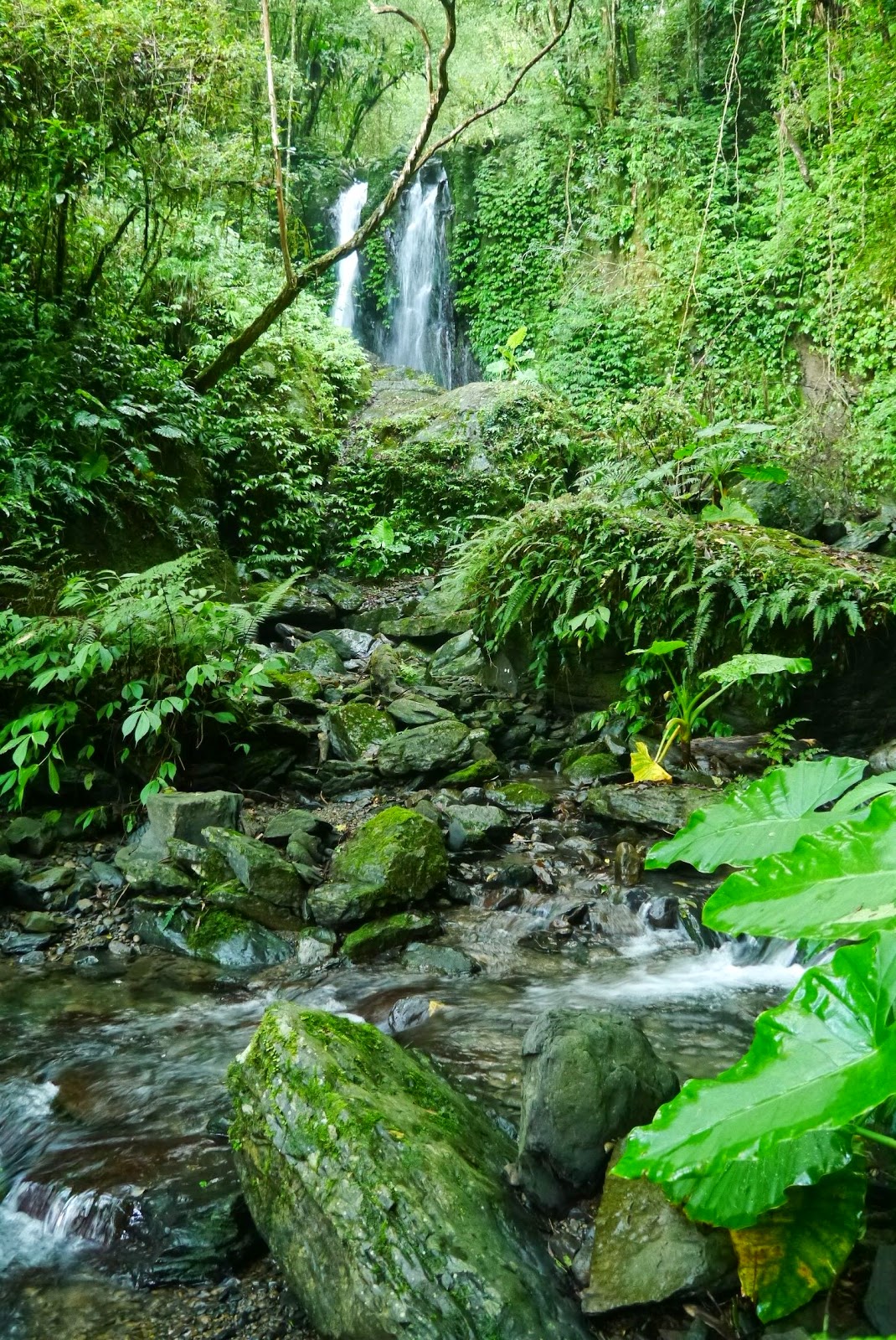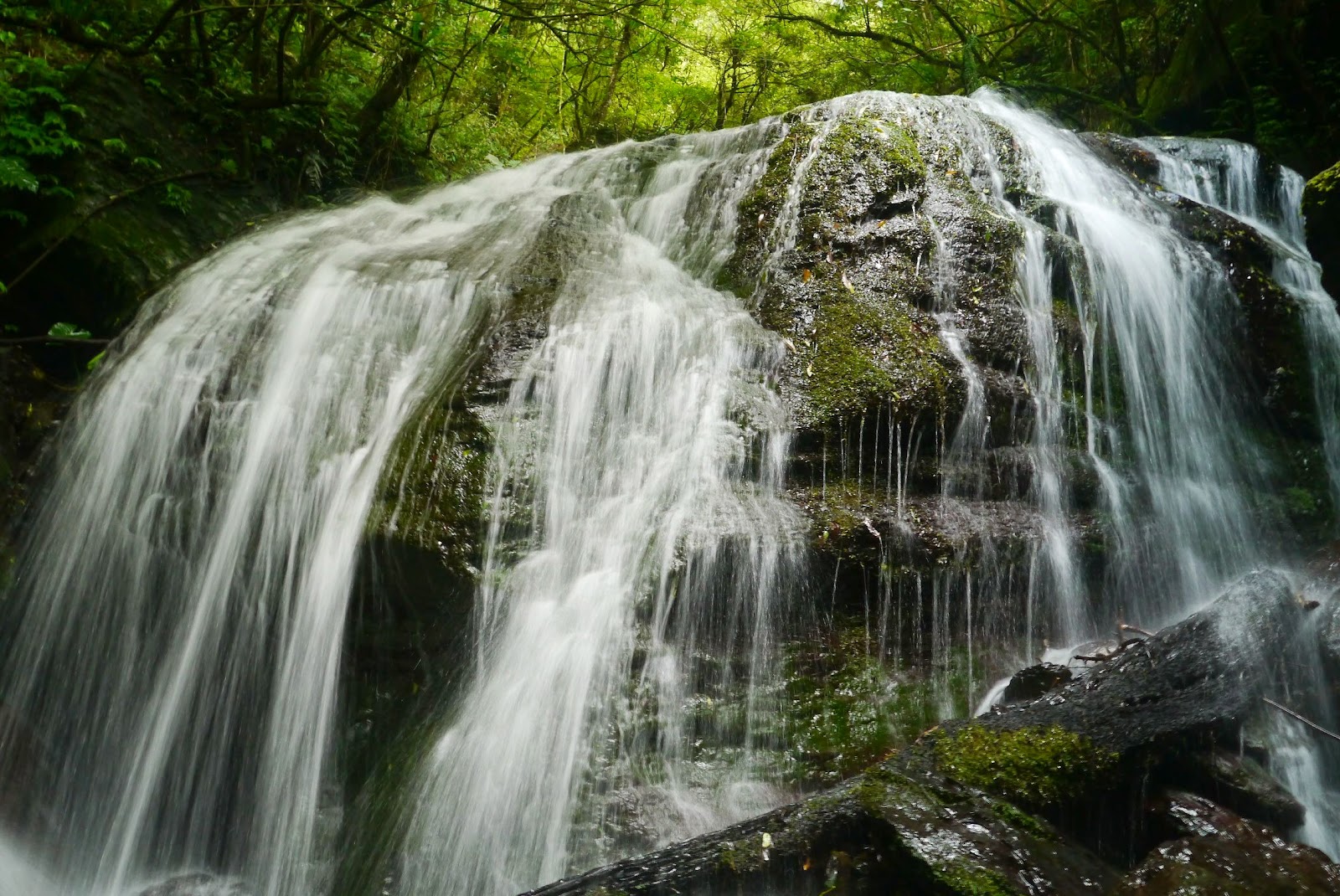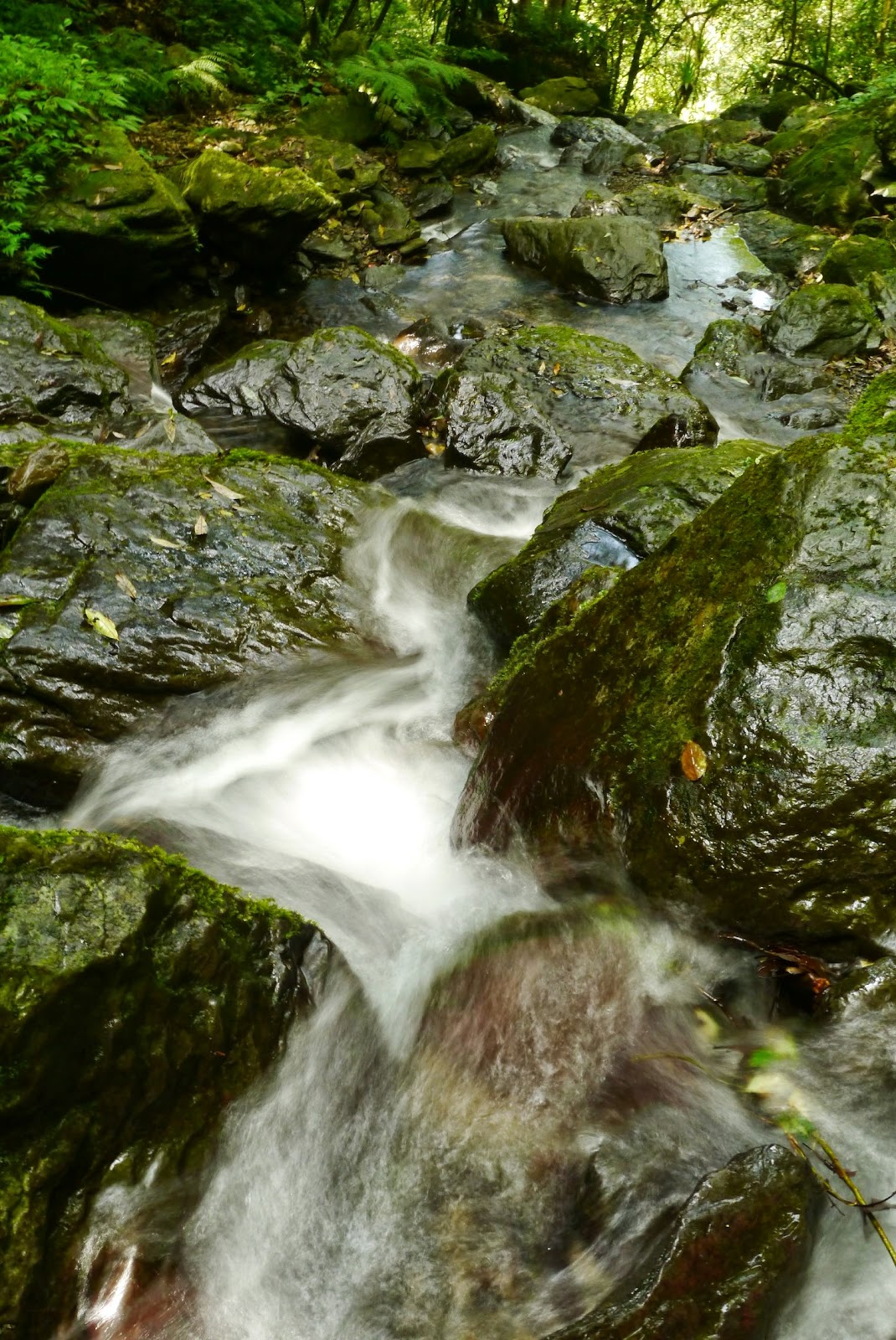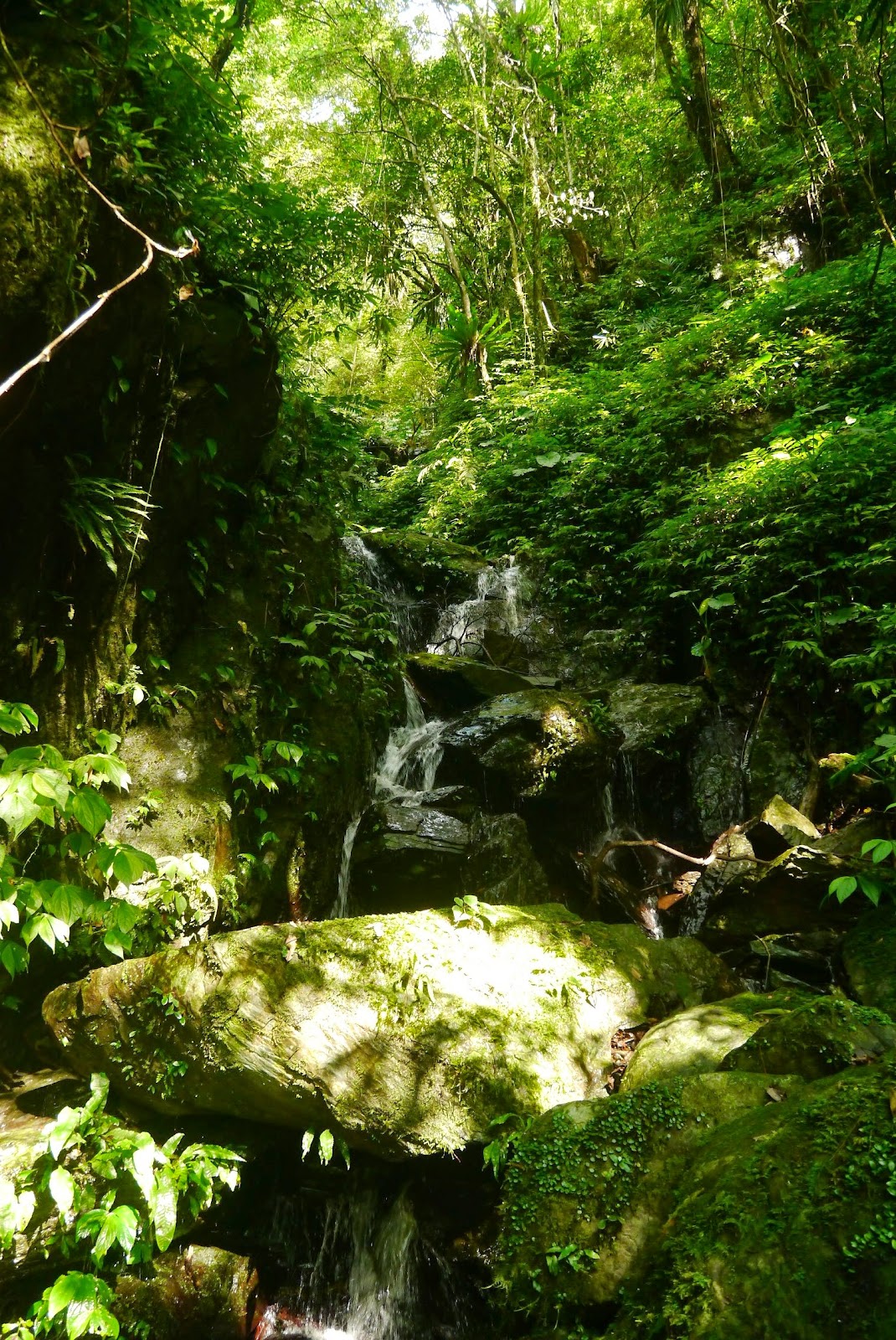 巨石上有個平台,水在上面聚集之後再一起宣洩入溪