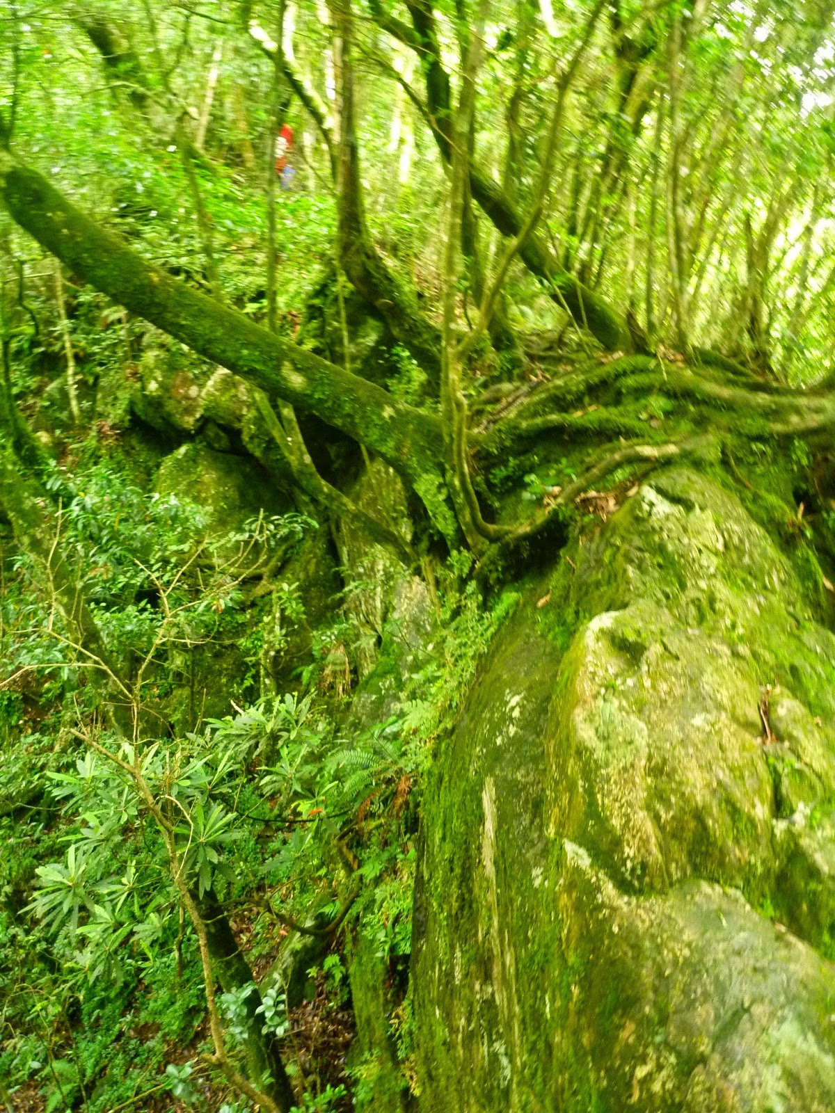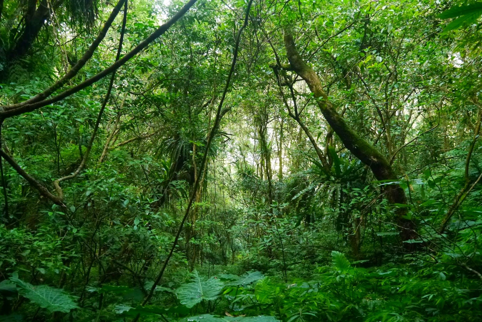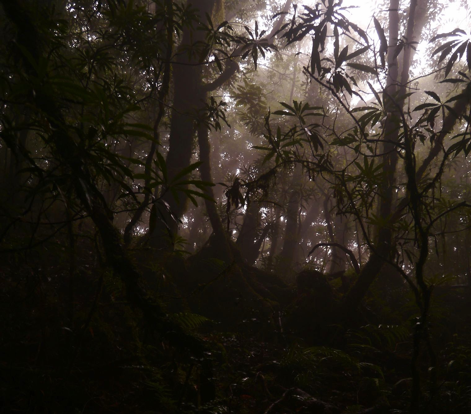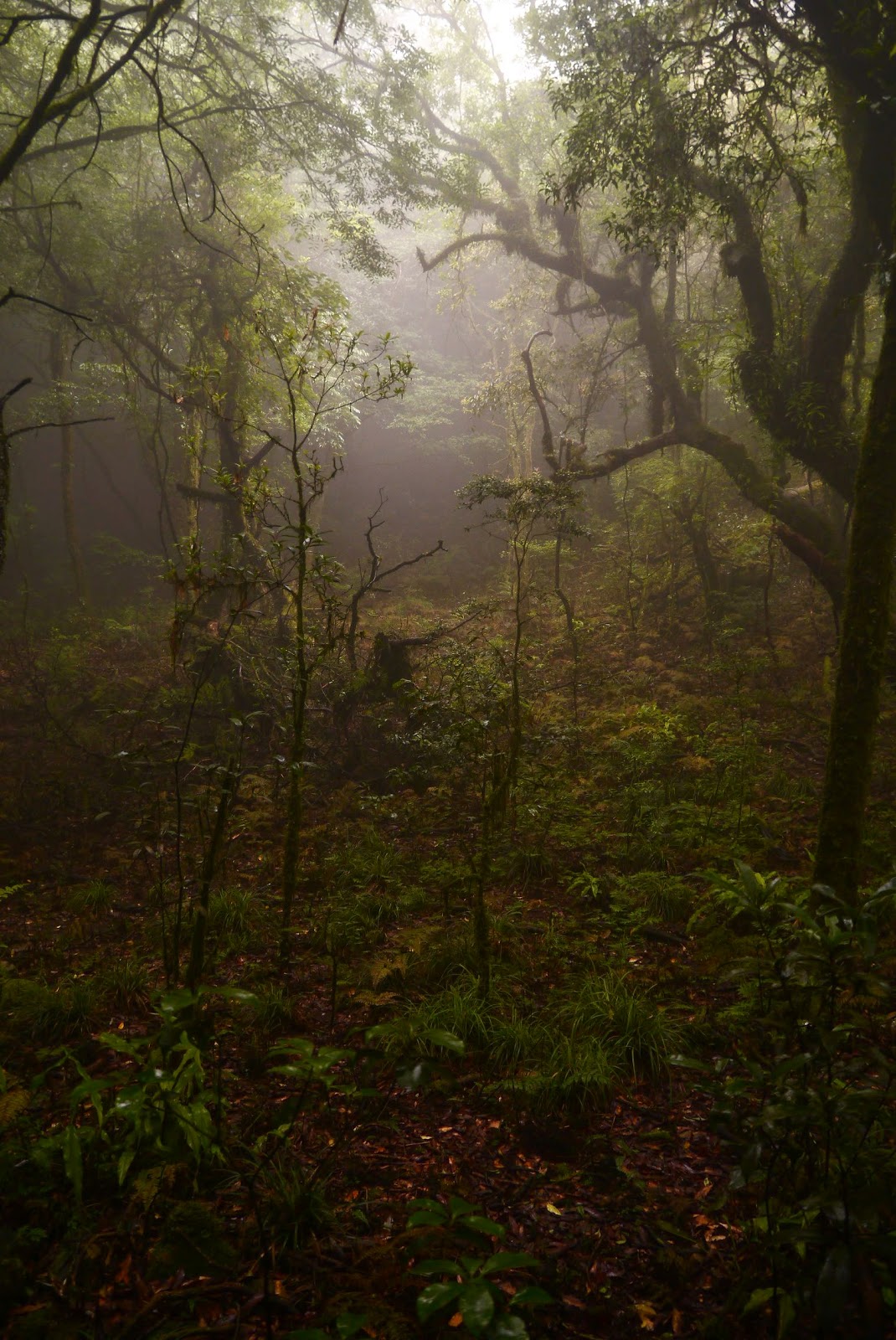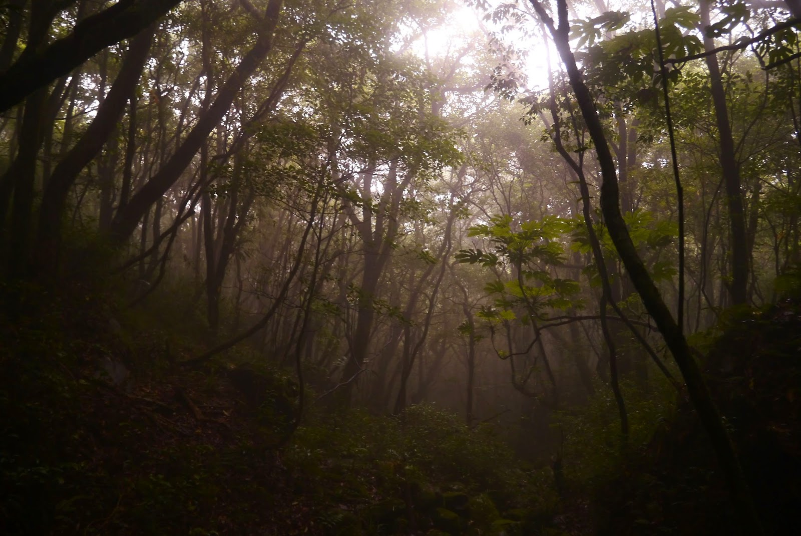 雖是大清早卻因為陽光無法照入森林中相當陰暗