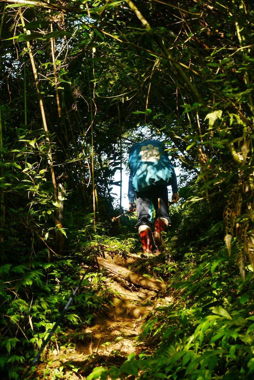 一開始就相當的陡峭,氣喘吁吁的經過小型農地,穿越一片茂盛竹林