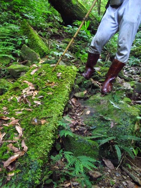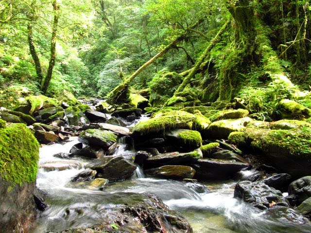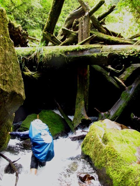 陽光能透入的地方僅僅是溪流正上方的空缺,日照不足夠的關係青綠色的苔癬四處蔓延