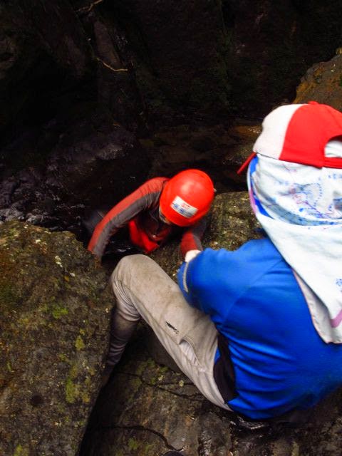 是一大困難考驗,我先試著下行卻不小心腳底一滑