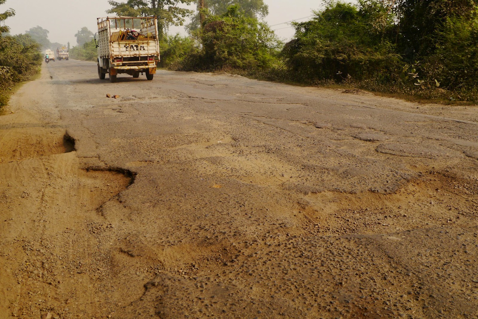 佈滿大大小小的碎石頭,還有多到閃不完的坑洞
