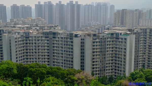 往獅子山前進,走在水泥山境上左手邊可以看到整個九龍半島