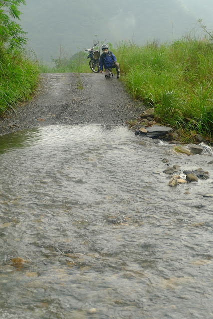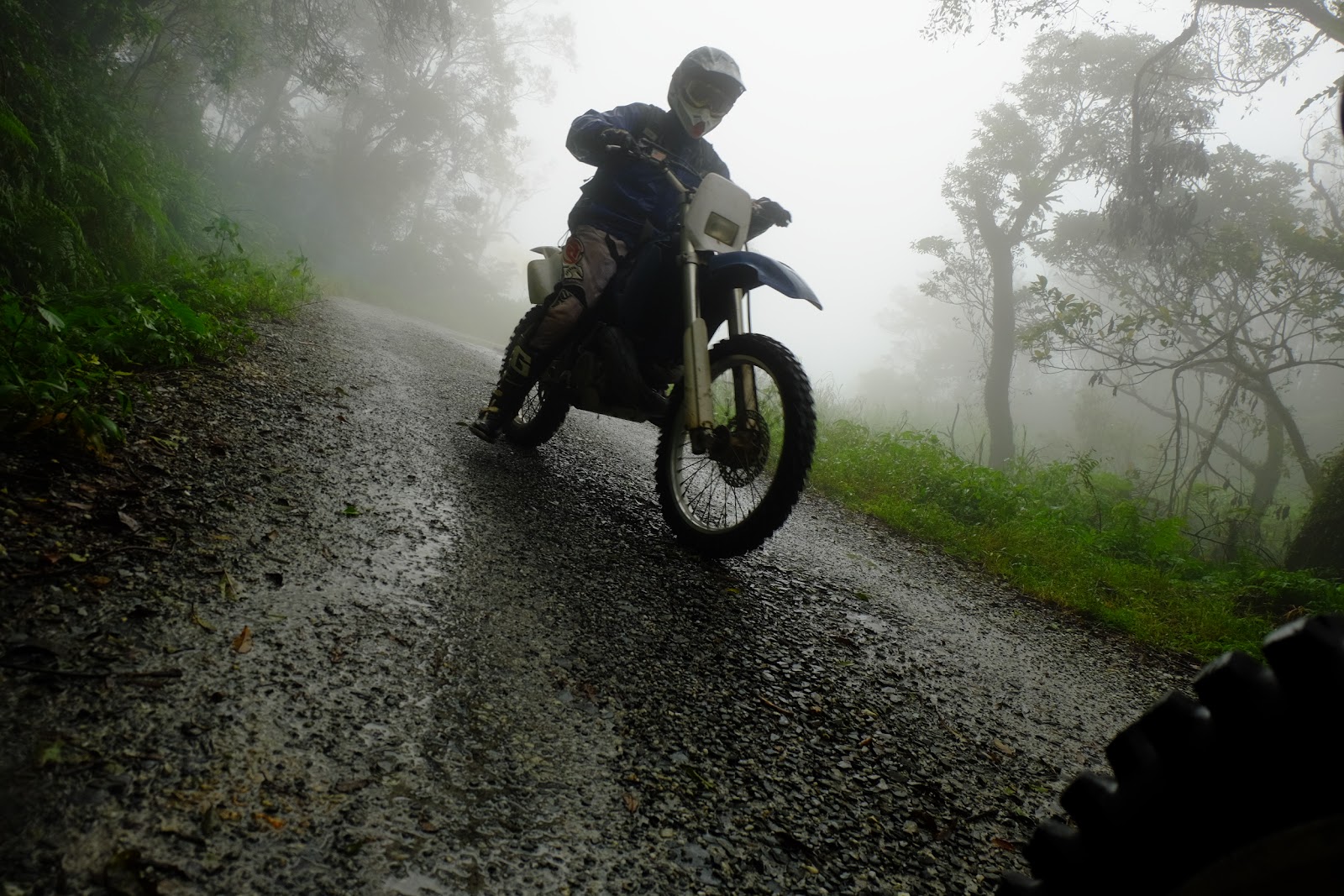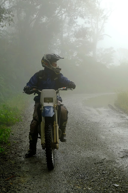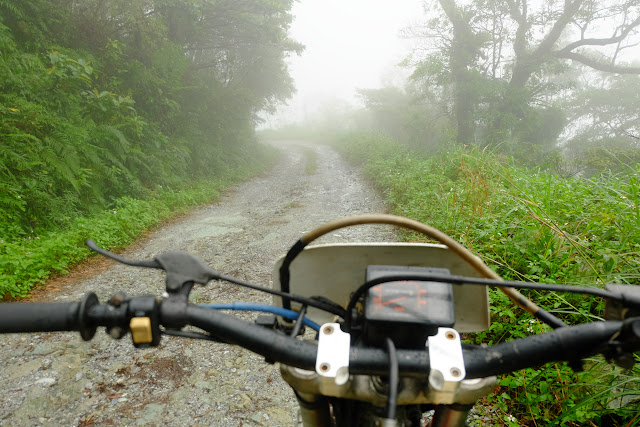 沿途雨勢頗大,沒有安全帽帽緣擋雨只有猴子借我的風鏡(墨鏡版)幾乎看不到路面