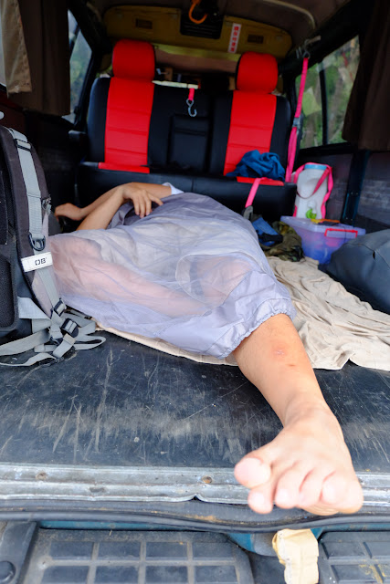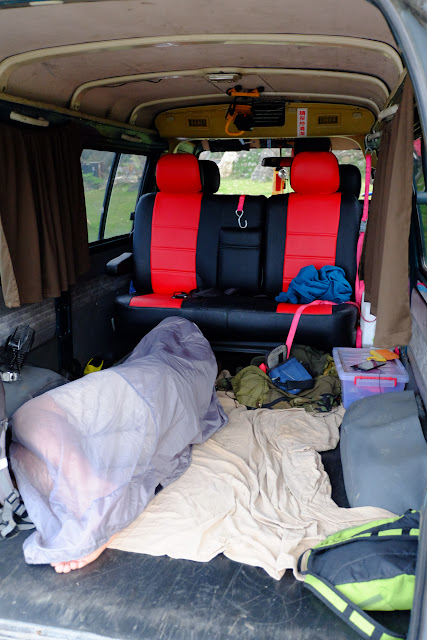 因為不想當蚊子意外的大餐,花了不少時間裝配車子使用的蚊帳