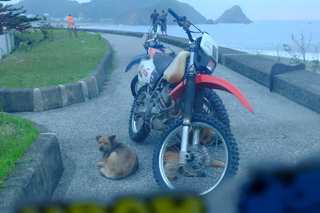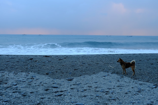 六點多,實在是受不了徹底醒來,帶兩隻狗遠離車子在海岸邊散步