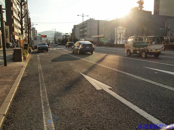 我最喜歡清晨和日落的斜陽,照亮柏油路面耀眼