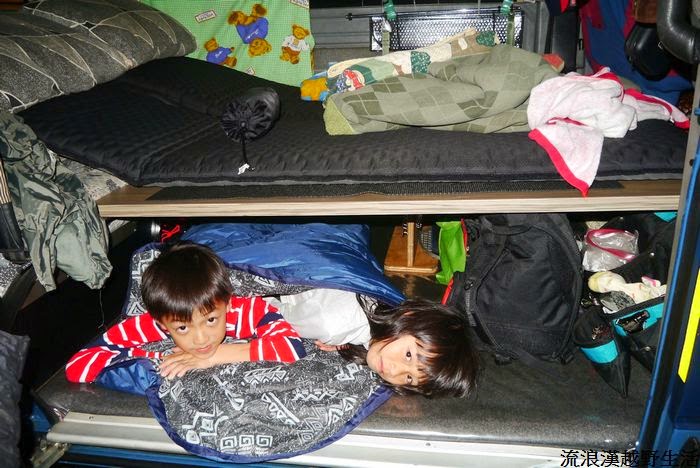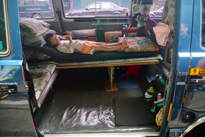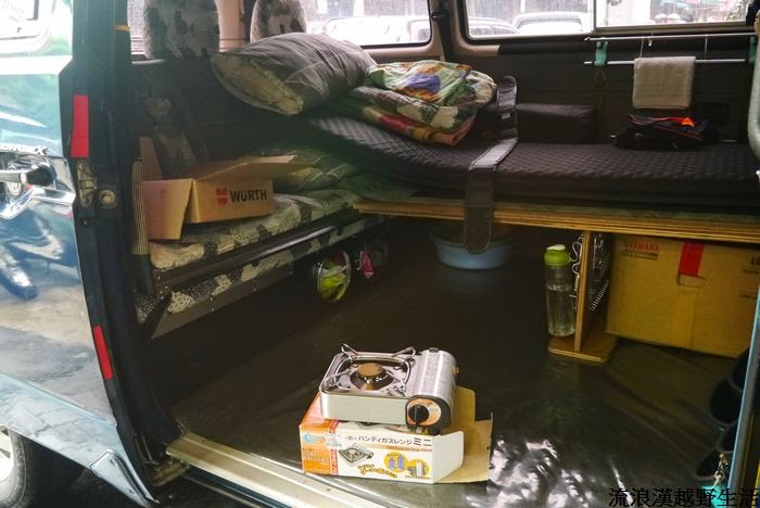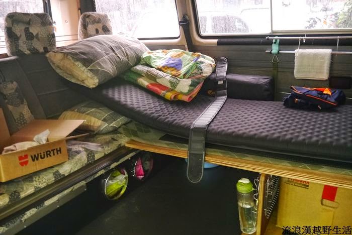 引擎護蓋上方有請人訂做榻榻米,除了隔熱隔音之外可以當睡墊