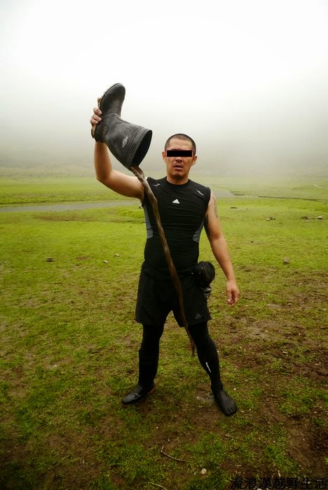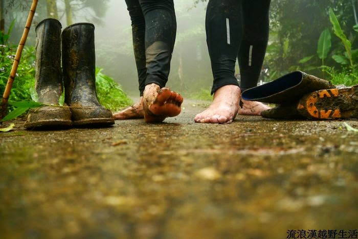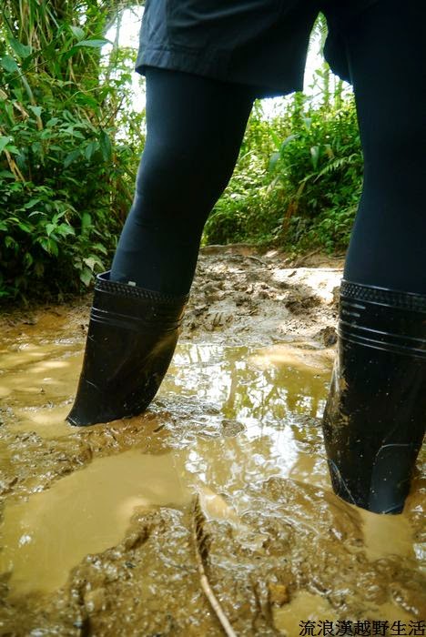 穿著出門前才買的新雨鞋,我買的是長筒的